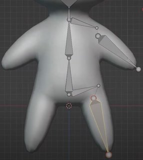 Для ножек создадим отдельные косточки для рук и ног Add -> Single Bone. Не забудем про ключицы. Для создания ключиц, выделим основание косточки шеи и нажмем "E". Для объединения отдельно стоящей кости руки и ключицы, Зажмем Shift и выделим сначала кость руки, а затем ключицу. Нажмем "Ctrl" + "P" -> Keep Offset. Теперь между косточками появляется пунктирная связь. Это значит, что косточка нашей ключицы теперь влияет на косточку нашей руки. Тоже самое проделаем с ногой, не забывая про кость таза (Рис. 8).