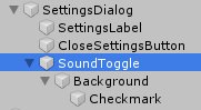 Сейчас вам не понадобится использовать метку, поэтому вам ее нужно отключить и переименовать Toggle в SoundToggle.