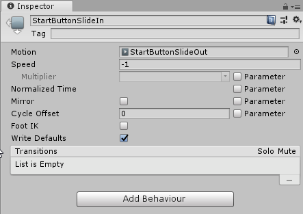 В дополнение к созданию самой анимации, Unity также помещает объект «Animator» в меню StartButton. Вы готовы начать?