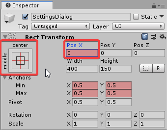 Имейте в виду, что изменение Anchors и Pivot не изменит положение элементов пользовательского интерфейса. Вместо этого они изменят поля до значений, которые помогают расположить элемент в определенном месте. Попробуйте изменить их значения, чтобы подобрать подходящую позицию. Кроме того, в компоненте «Переключить» снимите флажок «Вкл.».