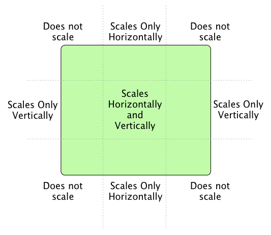 Часто изображения объектов, которые используются для создания игровой сцены имеют разный размер. Тоже самое относится к кнопкам и дополнительной анимации. Для облегчения процесса создания фонового изображения каждого объекта используется так называемое 9-фрагментное масштабирование. Этот метод позволяет создавать разные изображения для каждой из девяти зон, изменяя при этом их размер по своему усмотрению.